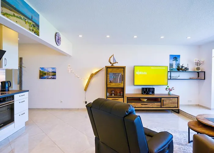 Dit strand appartement in Cuxhaven is te vinden in de Sahlenburg wijk van Cuxhaven, binnen 3 km van de Duhnen.
